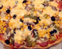 Соусом из масла с кетчупом смазываем тесто. После в ход идет смесь «паприкаш», нарезанные яблоки, шампиньоны, свежие помидоры, маслины, горошек и кукуруза. По желанию также можно добавить в начинку цветную капусту, брокколи, но совершенно обязательно посыпать пиццу сыром ― это must, так сказать.
