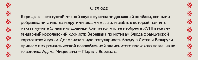 — Множество блюд, приемов приготовления и застольных ритуалов, которые были характерны для шляхты, мещанства и духовенства ВКЛ, не были в ХХ веке усвоены ни литовской, ни белорусской крестьянской кухней. Это вовсе не значит, что блюда были сложными и дорогими. Просто основными каналами их передачи были семейные традиции именитых родов и польскоязычные кулинарные книги. А в социальных катаклизмах ХХ века эти каналы, к сожалению, были разрушены. Поэтому сегодня и в Литве, и в Беларуси этот некогда общий для обеих стран пласт культуры бывших привилегированных классов иногда условно называют «литвинским». Если утрировать, то можно сказать, что это кухня тех, чьи предки носили слуцкие пояса.