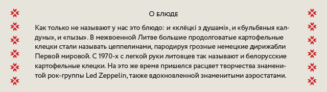 Один из самых ярких примеров — колдуны. Это литвинский аналог пельменей, вареников и равиолей, которые готовили из мучного теста с начинкой. Но никак не из картофеля! Тот же сырник: это творожный десерт в стиле «чизкейка». Но чтобы об этом помнить, нужно или родиться в семье графов Тышкевичей, или внимательно изучить ту же кулинарную литературу, которую читали они или их кухмистры.