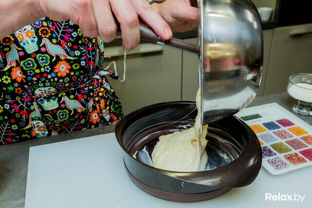 - 04Готовим форму, в которой смесь будет застывать: выкладываем ее бумагой для выпечки. Смесь вливаем в форму, выравниваем и оставляем застывать.