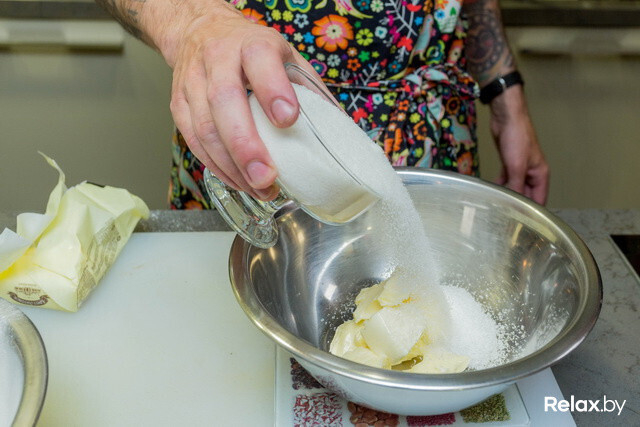 - 03150 граммов сливочного масла комнатной температуры взбиваем со 200 граммами сахара.
