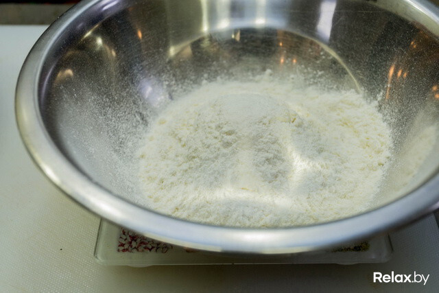 - 01Смешиваем муку с разрыхлителем и добавляем яйца.