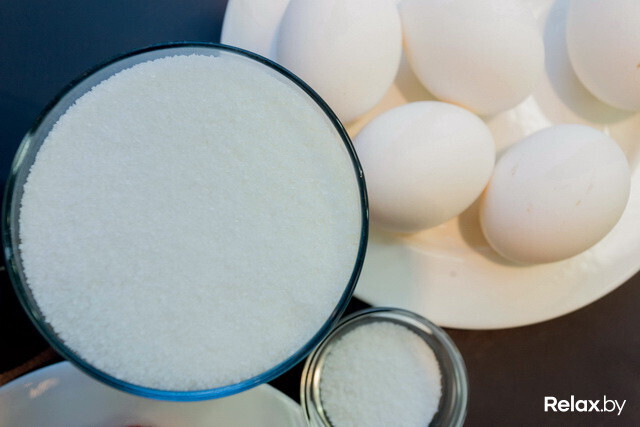 - 01Белки взбиваем до мягких пиков. Всыпаем сахар и продолжаем взбивать.