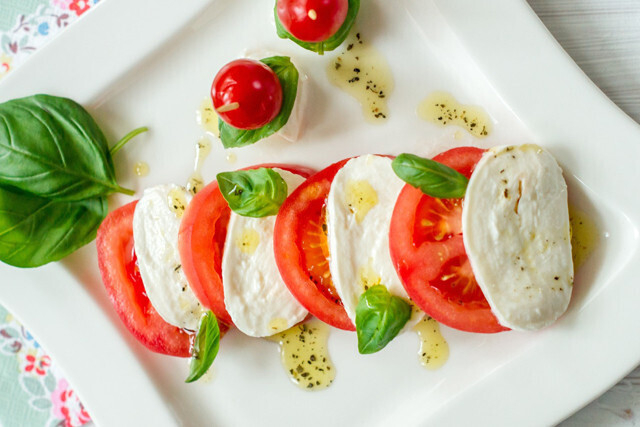 - 01Помидоры и шарики сыра моцарелла нарежьте кружочками. Они должны быть примерно одинаковой толщины.