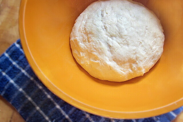 Замесите тесто. Оно должно выйти мягким и пышным, слегка липнуть к рукам.