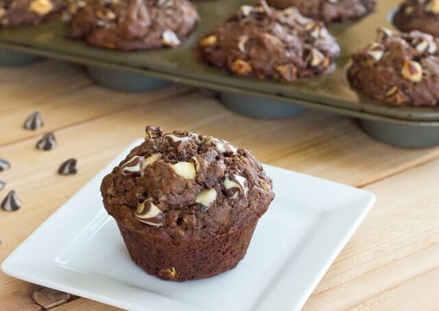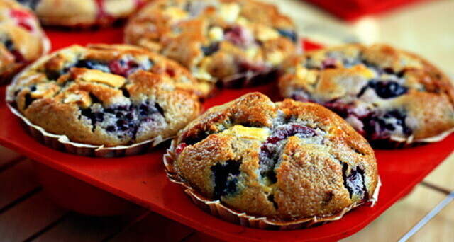 Подготовьте формы для выпекания: смажьте их сливочным маслом, а затем заполните тестом. Поставьте маффины выпекаться в разогретую до 180 градусов духовку на 25 минут.