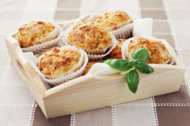 Держите маффины в духовке 20 минут при температуре 180 градусов. Готовые кексы посыпьте зеленью.