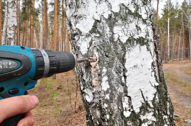 - При сборе березового сока не используйте такой инструмент, как топор. Он также оставляет губительные для дерева «раны». Идеальный вариант — дрель. Притом сверло должно быть приблизительно пять-десять миллиметров. Такое вмешательство не оставит на дереве практически никаких следов.