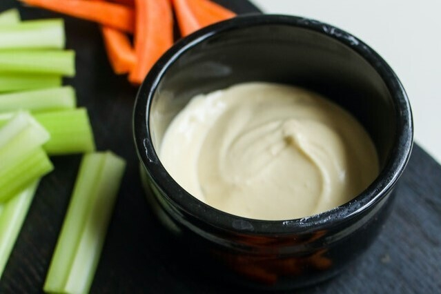 - Заправка с йогуртом без добавок, лимонным соком, укропом, чесноком и солью.
