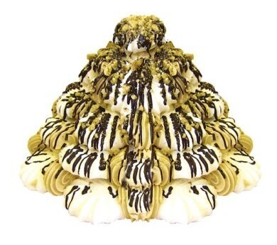 — Каждую штучку безе смазываем кремом и «строим» развалины. Сверху поливаем растопленным шоколадом и посыпаем орешками. Если оставить торт в холодильнике, его будет легче разрезать.