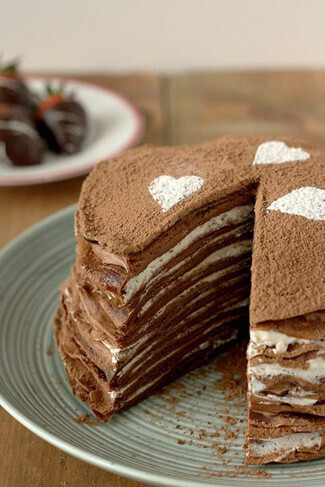 Приготовить обычные блинчики вам не составит труда. Блендер упростит стандартные процедуры — с помощью него можно смешать все ингредиенты. Тонкие блинчики поджарим на разогретой сковороде на сливочном масле. Теперь выкладываем блинчики так, чтобы получился торт, смазываем каждый слой начинкой. В качестве крема можно использовать Нутеллу, шоколадный мусс, сметанный крем или любой другой на ваше усмотрение. Совет: чередуйте несколько видов начинки.