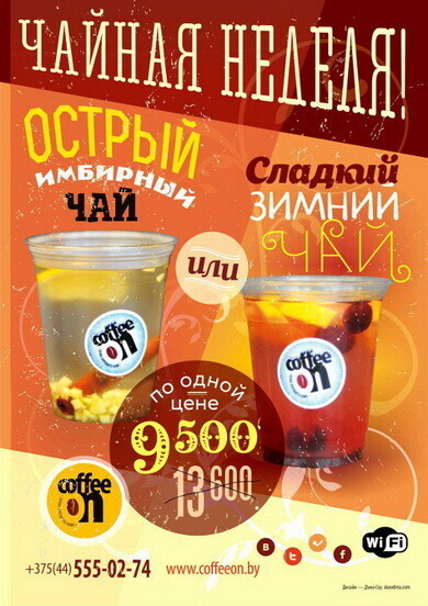 Приятная новость: действует акция: каждый 6-ой кофе/чай в подарок