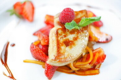 2. Фуа-гра с жульеном из манго и клубника с пряностями.