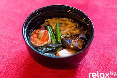 Попробовать настоящий японский суп интересно уже хотя бы для того, чтобы отойти от свойственной белорусам вкусовой привычке к густым наваристым блюдам на мясном бульоне. Японские же супчики — легкие, прозрачные и, несмотря на свою сытность, отлично оттеняют вкус последующих блюд. Перейдем к ним: в следующей категории нашего обзора — горячие закуски.