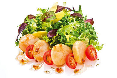 Еще один вкусный салат с морскими гребешками, ароматными помидорами черри, дольками манго и листьями салата под нежной цитрусовой заправкой. Казалось бы, сочетание овощей, дополненное морепродуктами. Но вот именно цитрусовая заправка и делает блюдо особенным! В любом случае, пробуя его, вы не будете сожалеть, что вынуждены выбирать из меню только «стройнящие» блюда.