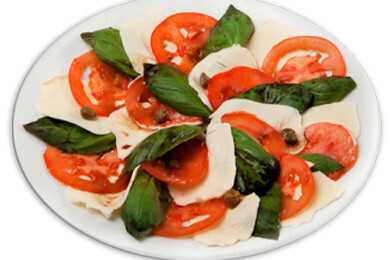 Известнейший итальянский салат с помидором, сыром моцарелла и листьями базилика. Классический вкус в сочетании с низкой калорийностью.