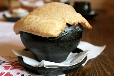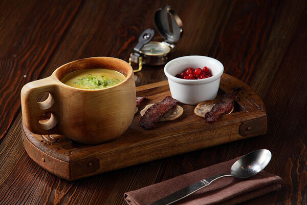Что попробовать: среди салатов — «Охотничий», «Хуторянка», «Охота на семгу». В качестве холодных закусок в меню есть традиционное «Угощенье из бабушкиного погребка» (гость сам может выбрать соленья по вкусу: капуста, огурчики, перец, грибы и др.). Среди горячих блюд — сковородка «Деревенская» (домашняя колбаса, грудинка, яйца, картошка), «Пьяный поросенок» (свинина, замаринованная в смеси приправ с коньяком) и «Мясо по-купечески». Средний счет на персону с алкоголем — 20-30 $. |