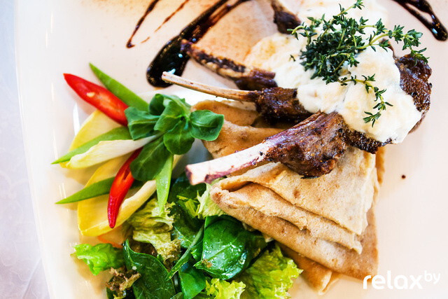 Что попробовать: На фото «Каре ягненка с овсяными блинами в стиле Мачанка». Сочные ребрышки ягненка — блюдо с ярким, насыщенным вкусом. Считается деликатесом и ценится за нежный, душистый оттенок. Также в Усадьбе можно оценить «Гусиную печень с драниками и боровиками под соусом из лесных ягод», «Гречневые блины с уткой, кроликом и грибным соусом», «Аппетитное колечко Стародворской домашней колбаски с картофельной драченой». Для любителей паназиатской кухни: традиционный тайский суп «Том Ям», паровые пельмешки «Дим Сам», суши. Поклонникам австрийско-немецкой кухни — «Телятина по-цюрихски с картофельным пирогом», «Медальоны из свиной рульки на тушеной капусте с домашним хреном», «Венский шницель с белыми грибами». Средний счет на персону — 50-60 долларов. |