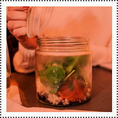Часть блюд в «Мон кафе» подают под бокалом: коньячный сосуд, наполненный дымом, обвивает блюдо до момента подачи гостю. Рыба, например, обдувается мятой, а мясо — яблочными ароматами. Появились также блюда, обрамленные жидким азотом.