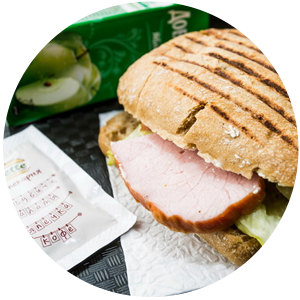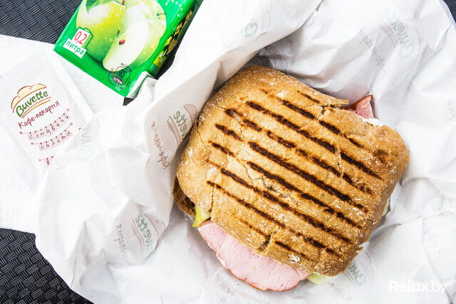 СЭНДВИЧ С ВЕТЧИНОЙ И АНАНСАМИ (59 800) + ЯБЛОЧНЫЙ СОК (9 900)