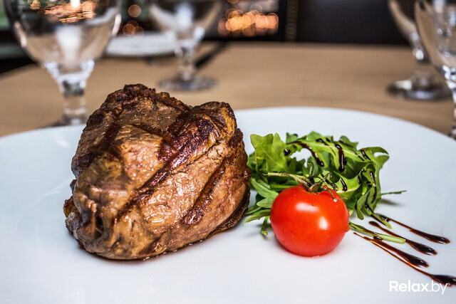 Безусловная классика — мраморная говядина травяного откорма. Сергей Стаднюк давно работает в ресторане, поэтому его стейки многим минчанам хорошо знакомы. Из винной карты выбираем выразительный калифорнийский напиток с хорошо выраженной кислотностью и долгим послевкусием.