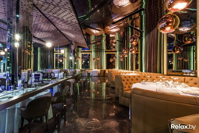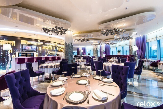 Серебристо-пурпурный The View с живыми орхидеями — самый высокий ресторан Минска (100 метров). Вероятно, этим он и привлек гостей города: через панорамные окна открываются отличные виды. Сориентироваться в блюдах европейской и высокой авторской кухни и дополнить их хорошим вином помогут шеф-повар и сомелье.