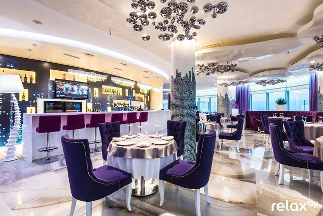 Романтичный серебристо-пурпурный The View с живыми орхидеями не покидает строки топа. Самый высокий ресторан Минска (100 метров) привлекает гостей прекрасными видами через панорамные окна. Высокие сервис и кухня добавляют торжественности: в блюдах европейской и авторской кухни ориентирует шеф-повар; сомелье дополняет гастрономический сет достойным напитком.