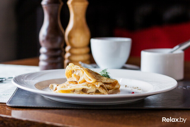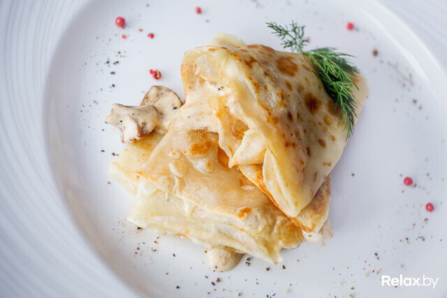 Блинчики с грибным соусом (отметим, что соус авторский, на основе белых грибов)