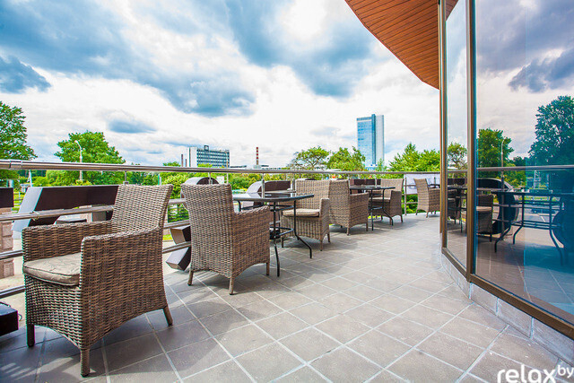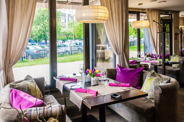 В ресторане с панорамным видом на Национальную библиотеку и парк стейки готовят на открытом огне, пиццу — на дровах, а «Оливье» — с красной икрой. В интерьере использовали натуральные камень и дерево — получился fusion с американским акцентом. Европейскую классику здесь готовит вице-президент Гильдии шеф-поваров Литвы, который каждую неделю представляет гастрономическую новинку. Можно попробовать крем-брюле из утиной печени с абрикосовым джемом и томатами, карпаччо из говядины с маслом из трюфелей, корейку из телятины, маринованную тимьяном, или каре ягненка, маринованное с мятой.