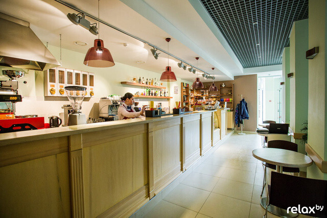 В заведении со стенами цвета необжаренного зерна можно отведать, к примеру, морковный пирог с чашечкой авторского кофе «Голубая лагуна». Главный советчик — общительная девушка-бармен, которая с удовольствием расскажет, какой сироп и десерт лучше всего подойдет к вашему любимому напитку.
