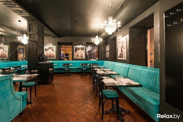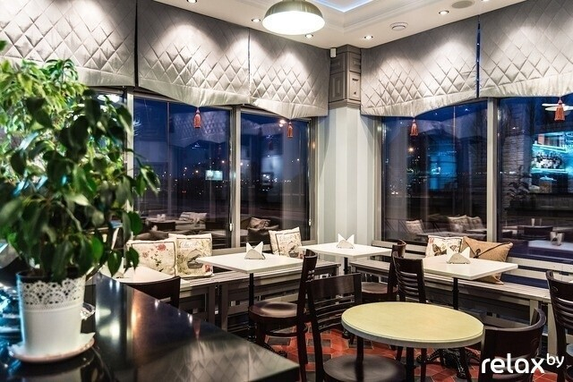 В ресторане «Веранда» с обилием света, дерева, живыми растениями и природными тонами в отделке предлагают итальянскую кухню с белорусским акцентом; особенно рекомендуют стейки и пасту собственного производства. Во время ланчей здесь многолюдно, да и места есть невероятно привлекательные: с пухлыми диванами около огромных витражных окон. В общем, столик лучше бронировать заранее.