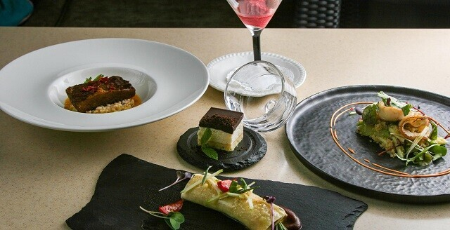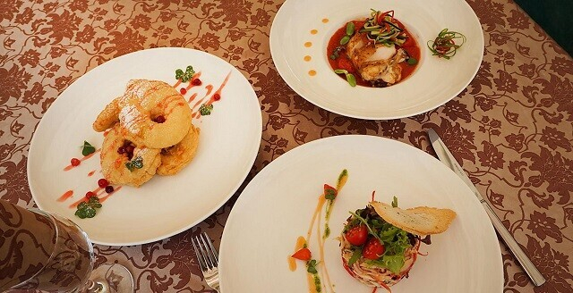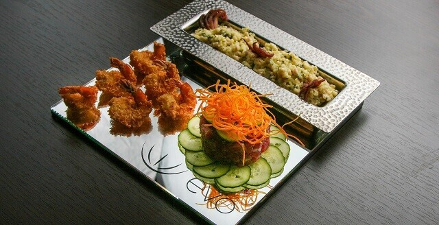 1. Комплимент от шеф-повара: тартар из морепродуктов с жареным пармезаном и кресс афила