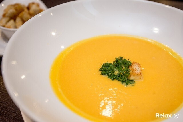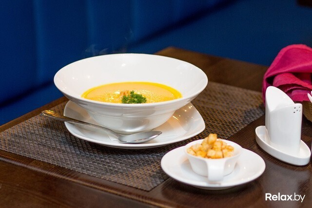 Любители супов смогут попробовать домашнюю солянку, куриный бульон с яйцом и гренками, картофельный суп-пюре и крем-суп из тыквы. Любое из этих блюд обойдется вам всего в 1,5 рубля.