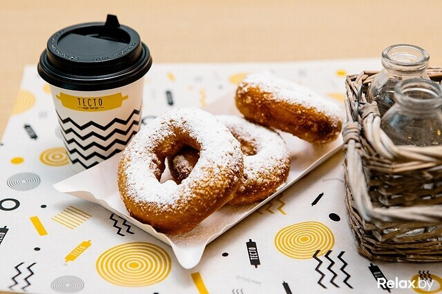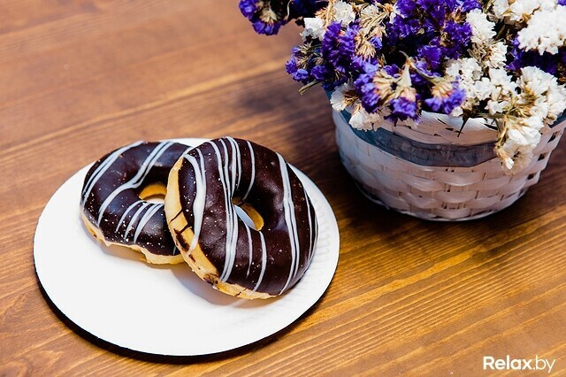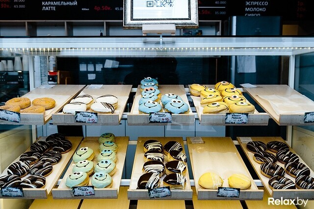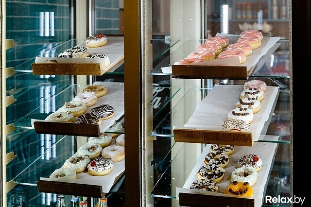 В этой кофейне пончики можно найти в любой день и час. Здесь их не пекут: приобретают в кондитерской компании «Куртье» (где их, готовые, подвергают шоковой заморозке). Найдется здесь только донат (с дырочкой внутри) с шоколадной помадкой. К слову, пончики в заведении покупают весьма активно, зачастую не обращая внимания даже на десерты поинтереснее. Сладость прибывает сюда раз в неделю (как правило, в ее начале).