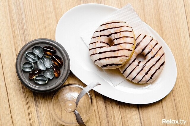 В следующем заведении удалось встретить донат с ванильным кремом внутри. Здесь ассортимент зачастую шире: бывают и с клубникой, и с темным или белым шоколадом. Заказывают их у немецкого поставщика и описывают как весьма достойные. Сказать, что пончики лидируют среди местного разнообразия, не могут, но уверяют: минчане очень любят пончики! Как только десерт пропадает с полок Cool Сoffee, его заказывают вновь. Так что остаться без пончика в указанной кофейне можно лишь, когда они преодолевают путь сюда.