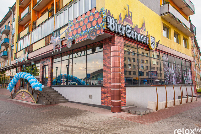 В мае 2014 года на месте Sun Cafe открылся пивной бар BierStrasse. Ему не очень обрадовались жители дома, зато шумные гулянки привлекали многих минчан. В ассортименте были разные сорта пива, закуски и основные блюда по баварским рецептам. Но в 2016 году сеть баров закрылась.