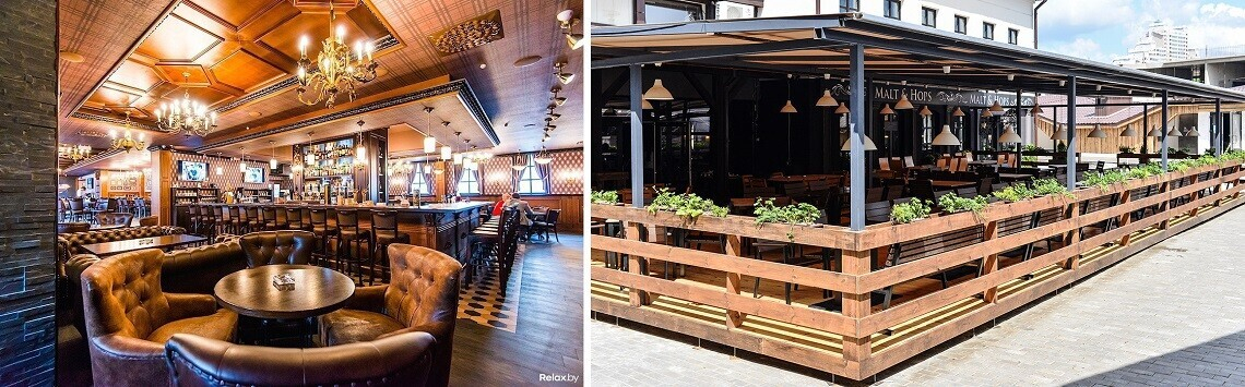 Самая любимая точка минчан на тусовочной Зыбицкой (причем со внушительным отрывом) — аутентичный английский паб Malt & Hops. Отдохнуть тут предлагают за внушительной периметральной барной стойкой или за просторным столом на дружелюбном кожаном диване (в зале есть даже камин!). Дополняет атмосферу музыка под стать. Кухню паба называют истинно британской: классический лондонский «фиш энд чипс», только дополненный уникальными изысканными позициями. В алкогольной карте — широкая линейка виски (британских и не только). В летнее время здесь работает хорошо знакомая завсегдатаям уютная терраса с живой музыкой.