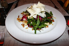 Я выбрал сальтимбокку опасаясь еще одного кулинарного харакири, и, к сожалению, не ошибся. Свежий шалфей заменили на бесполезный порошок из сухого шалфея, который положили между мясом и куском чего-то, что должно было быть ветчиной, но, по крайней мере, здесь они были честны и не писали, что это Парма.