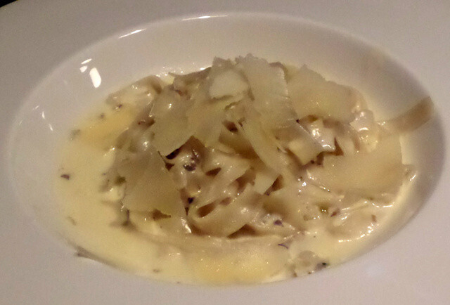 Я должен выразить свое восхищение. Если эти тальятелле (и опять «тальятелле», от ит. – tagliatelle, а не «тальятелли») на самом деле домашние, то были они сделаны с большим мастерством. Паста достаточной твердой структуры, не развалилась при варке, приготовлена «аль-денте», т.е. по всем правилам. Трюфельное масло было добавлено в правильном количестве, чтобы придать соусу аромат.
