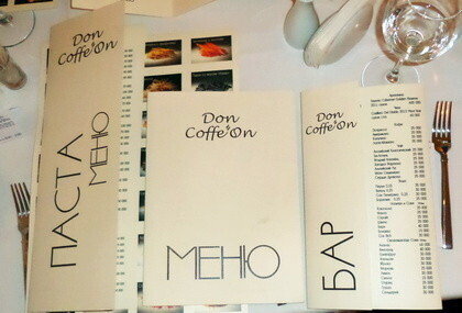 Есть ли у нас ресторан, посвященный “Pasta’s Lovers”? Недавно открывшийся “Don Coffee On” по адресу ул. Зыбицкая,9 претендует на это звание. Нам предлагают 38 типов пасты и 25 видов различных соусов. Похоже, с выбором проблем не будет. Тем не менее, предлагаю обратить наше внимание на качество и на вкус подаваемых блюд.