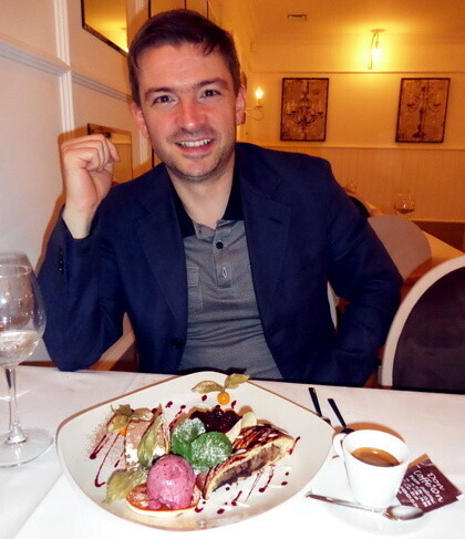 Я впервые встречаю в Минске директора ресторана, который встречает гостей на входе и который лично принимает у них заказы. Директор Вероника, не смотря на свой возраст и красоту, уже имеет за плечами 6 лет опыта в ресторанном бизнесе. Данный опыт она использует на практике с галантностью и профессионализмом. Она очень хорошо справилась с моим присутствием в зале, и, не испугавшись, была всегда была готова предоставлять нам интересующую нас информацию по поводу блюд. Также она с легкостью управлялась и с их подачей на стол. К слову, подача блюд была на самом деле очень быстрой, наверное, даже чересчур быстрой. В перерыве между блюдами я не успевал делать фотографии, делать пометки и вести диалог с желанным Гостем. Настолько быстрой, что я даже забыл сделать традиционную фотографию с десертом и Гостем.