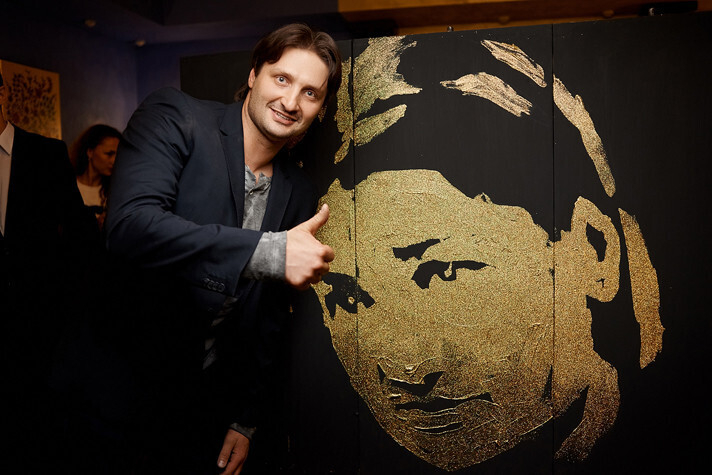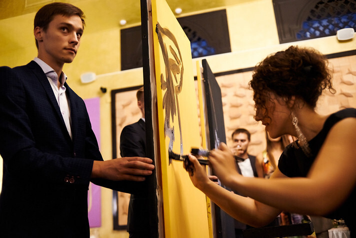 Белорусская художница Светлана Савчук чуть более 3-х минут колдовала над пустыми холстами, в итоге перед изумленной публикой появился портрет хозяина вечера Эдгарда Запашного.