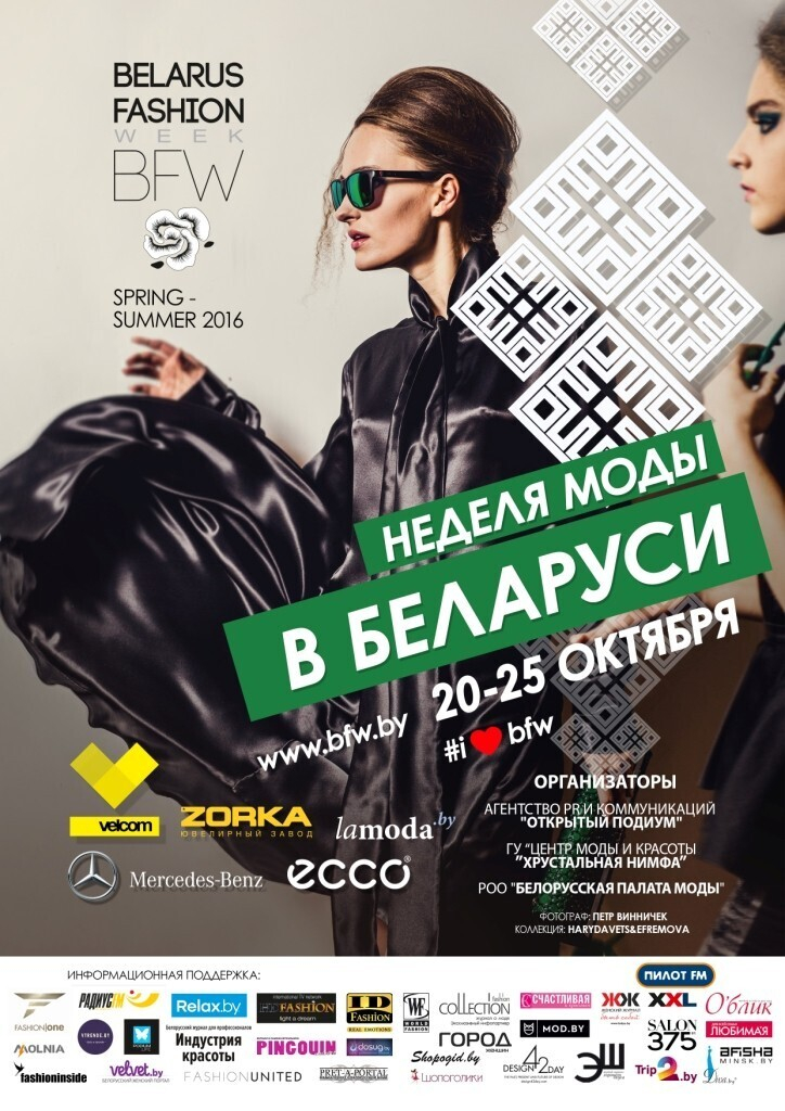 21-25 октября 2015 года в Минске пройдет десятый, юбилейный выпуск проекта Belarus Fashion Week (Неделя Моды в Беларуси). На протяжении пяти лет, дважды в год, платформа BFW собирает дизайнеров и художников, журналистов и руководителей ведущих компаний, известных личностей и профессионалов разных сфер. Стабильность проведения, профессиональный подход к организации, уважение со стороны государственных структур, зарубежных коллег и наглядные результаты деятельности Оргкомитета — вот что выделяет Belarus Fashion Week.