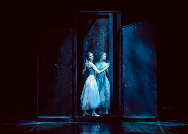 В новой редакции «Красной Жизели» Эйфман в определенном смысле стирает грань между зрителем и происходящим на сцене. Но, если в драматическом театре это делают, например, непосредственно обращаясь к публике, то в балете Эйфмана зритель чувствует себя находящимся на сцене, участвующим в происходящем. Благодаря оригинальным декорациям Вячеслава Окунева театральное пространство искажается: на заднике изображен таинственно сверкающий зал Мариинского театра, а потом и зал Парижской оперы.
