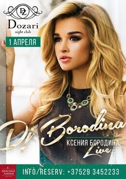 Провести свой вечер в компании этой талантливой и обаятельной девушки можно уже в этот уикенд. Звезда «Дом-2» приедет в Минск с эксклюзивным dj-сетом: 1 апреля икона стиля Ксения Бородина за ди-джейским пультом клуба Dozari!