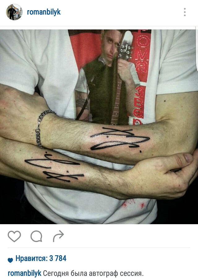 Порой Роме встречаются весьма горячие поклонники – во время недавней автограф-сессии один парень попросил расписаться на руках. На следующий день он пришел на концерт – автографы превратились в тату.