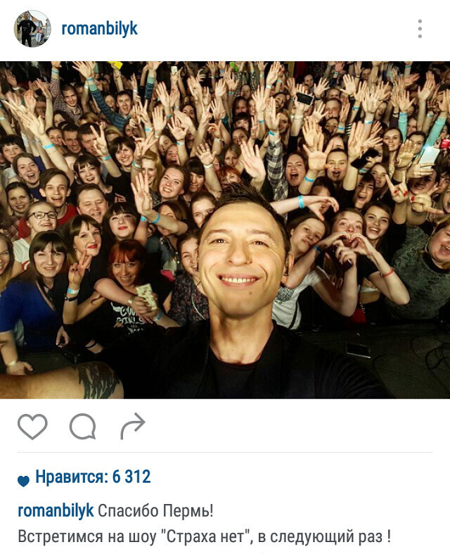 Естественно, в своем Instagram он освещает и гастрольную жизнь. Фото дорог и городов, видео закулисья. Но больше всего фотографий счастливых поклонников на концертах. Иногда в кадр попадает и сам Рома. Верим, что в Минске 26 мая он тоже сфотографируется с белорусскими зрителями.