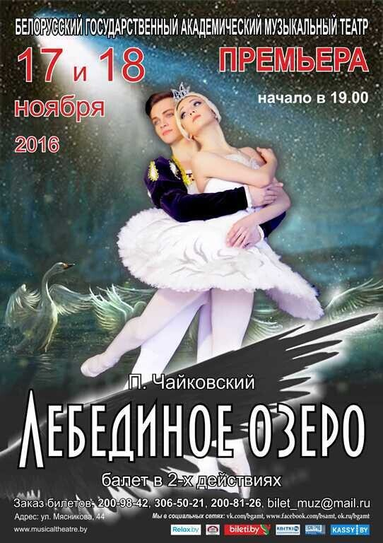 17 и 18 ноября труппа классического балета Белорусского государственного музыкального театра представит зрителям свою версию знаменитого балета. В отличие от стандартных, четырехактных спектаклей, постановка Музыкального театра будет состоять из двух актов и четырех картин, по две картины в каждом акте. В основу хореографии второй и четвертой картин – "озерно-лебединых" – положена классическая редакция Петипа-Иванова. Первая же и третья картины балета будут исполняться в редакции балетмейстера-постановщика, главного балетмейстера театра, народной артистки Беларуси Екатерины Фадеевой.