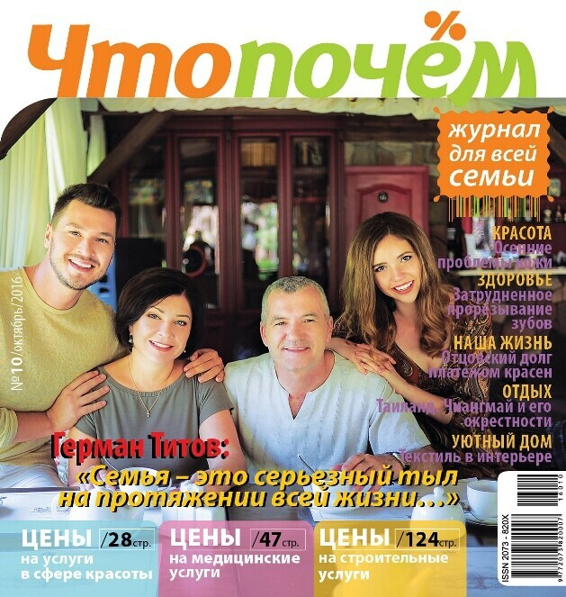 На обложке октябрьского номера – популярный исполнитель, композитор, телеведущий, желанный гость на любом празднике Герман Титов с семьей – родителями и сестрой.