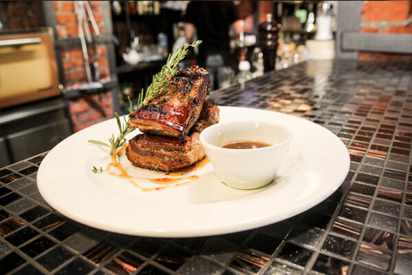 К соусу мы подаём свиные рёбрышки, приготовленные в печи, от чего вкус получается таким, будто мясо готовили на открытых углях. Оно отлично сочетается с лёгкой сладостью нашего соуса.